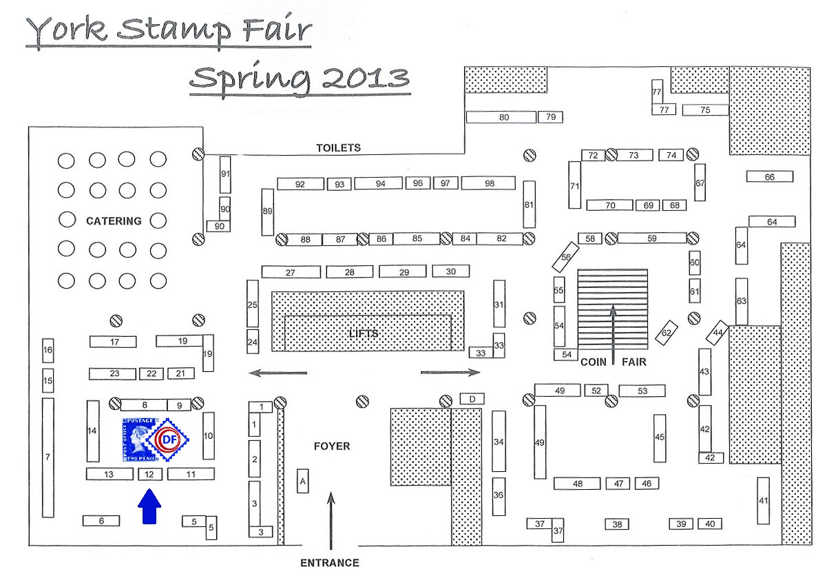 Our philatelist Ricky Verra will be at the York Racecourse Stamp and Coin Fair on January 18th-19th at our regular position on stand 12 (see map below).