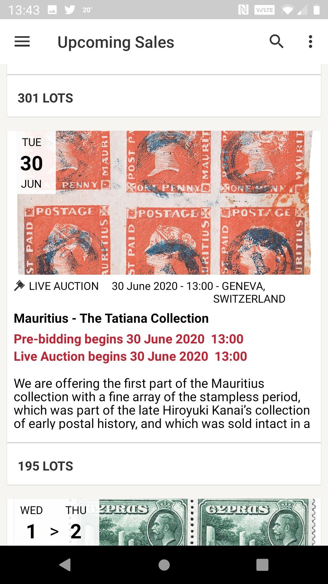 It also offers similar features to our website such as easy access to our upcoming auction catalogues in a mobile device-friendly format, including search facilities and placing book bids. In addition, new features of the app include the ability to follow lots you are interested in, instantly send an email request or call us about a specific lot, and even send photos of your stamps using your phone’s camera for our experts to evaluate.