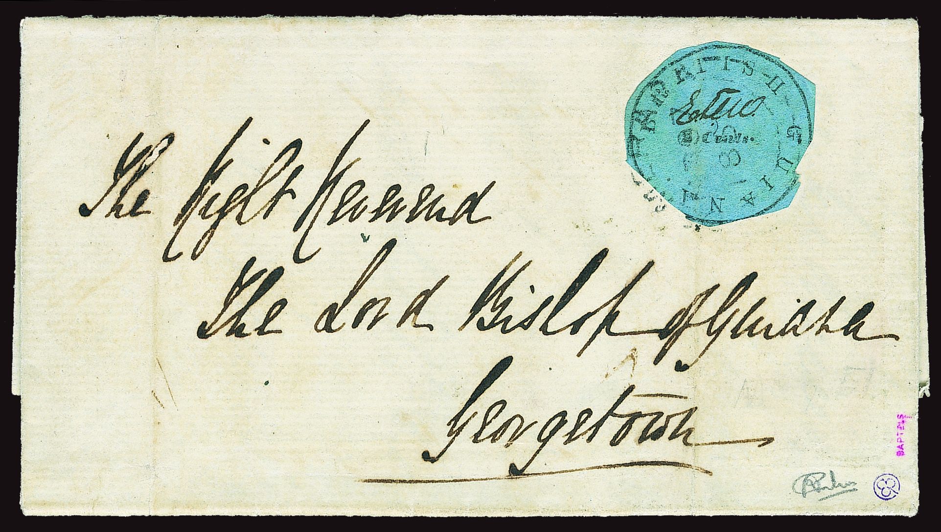 The letter, addressed to the « Right Reverend/The Lord Bishop of Guiana/Georgetown », was written by the vicar of Leguan and, according to a catalogue description, « contains unctuous greetings ».