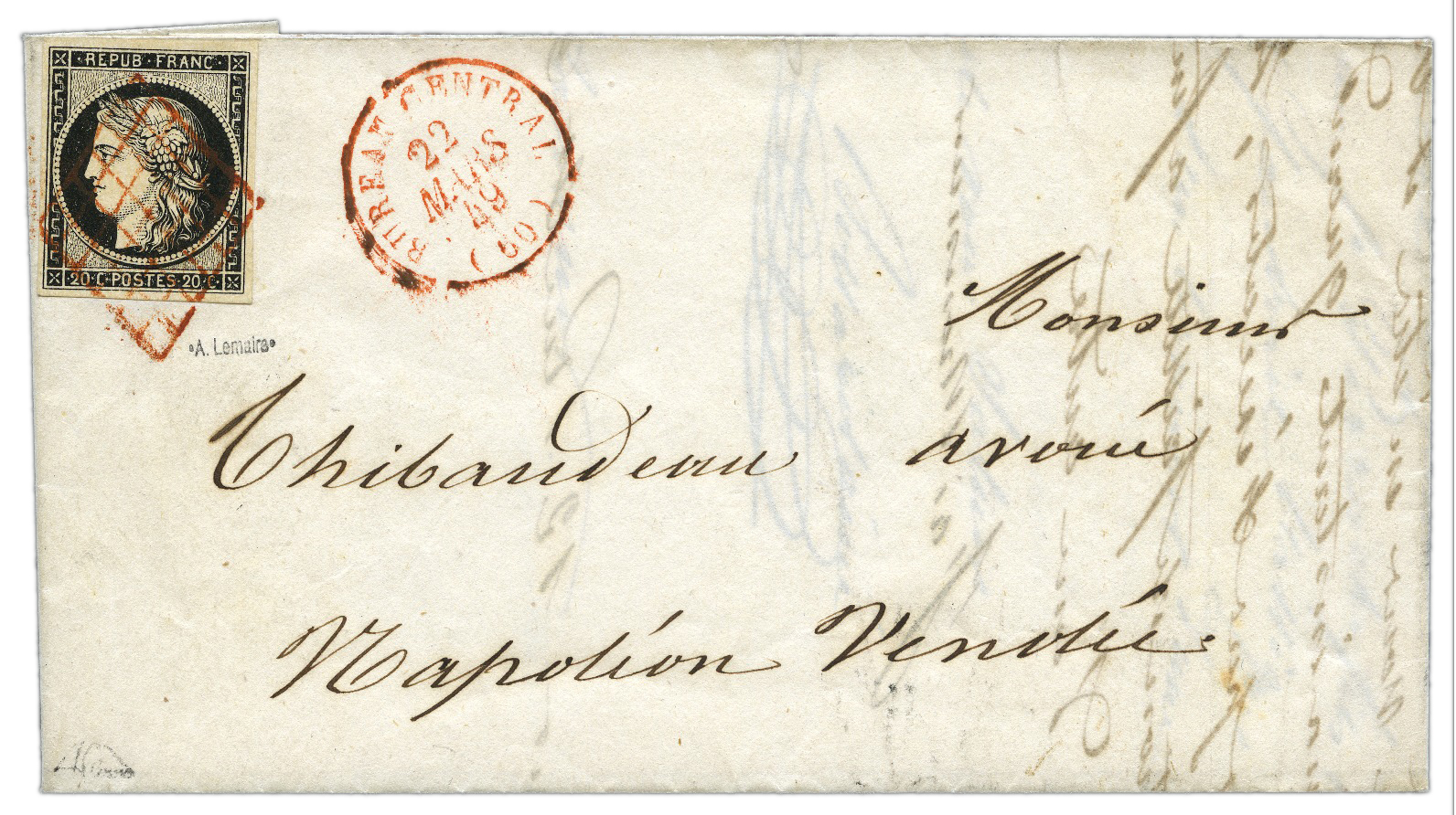 Now, if you’ve read the book you’ll know Fogg and Passepartout took a seemingly sensible steamer across the Indian Ocean next, which we will do but not until day four of our adventure when we take in the delights of the Indian Princely States in a sweltering 675 lot auction, so hold that thought, because ‘La vie est belle’ and day two Tuesday 1st December we have fashioned a fantastique morning taking in France and Colonies, with 669 lots of histoire postale and French timbres, a particularly eye catching example available on the day is this beautiful 1849 cover with an exquisite combination of a red grid on Ceres 20c black, and there are lots of French classics on and off cover, but no long lunches on this colony packed itinerary from Algeria to Wallis and Futuna, a total of 28 countries and 160 stop-offs, before we give our undivided attention to France turning the clock back to 1849 and the Ceres issues and tip-toeing through the French reigns from the Empire through to the Wars of 1870-71 and on to the 1900’s and taking flight with airmail and a proper cargo of collections.